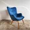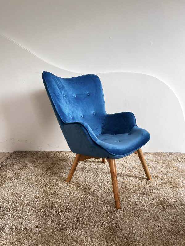This modern blue velvet chair with ottoman is the perfect blend of style and comfort. The chair’s sleek design and plush, blue velvet upholstery add a touch of elegance to any living space. Its high back and armrests provide excellent support, making it perfect for relaxation or reading. The wooden legs add a natural, rustic touch that complements the modern design. The matching ottoman offers additional seating or a comfortable footrest, enhancing the overall functionality of this piece of furniture. Ideal for living rooms, bedrooms, or reading nooks, this chair and ottoman set is both stylish and practical.